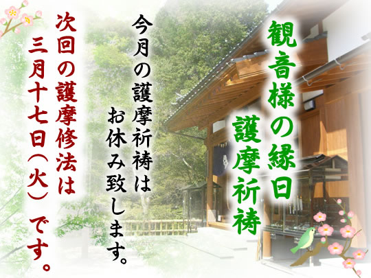 2月の本尊 十一面千手千眼観音菩薩様の縁日 護摩祈祷はお休みです